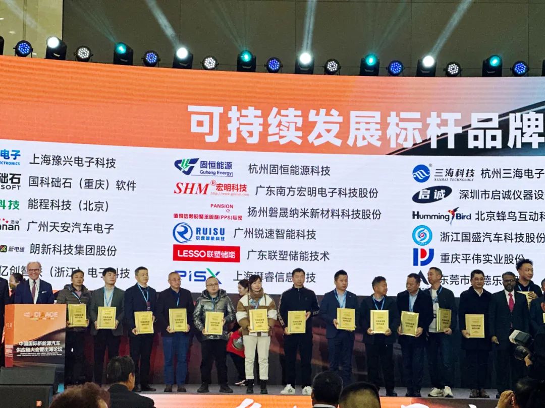 作為新能源汽車供應鏈的優質企業,大會主辦方為固恒能源頒發了《可持續發展標桿品牌》的獎牌