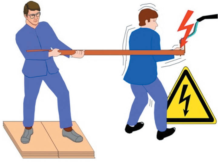? ? ? ?若身邊沒(méi)有工具時(shí),救援者最好戴上橡皮手套,穿橡膠鞋等,拉開(kāi)跌開(kāi)式熔斷器或高壓保險(xiǎn)開(kāi)關(guān),千萬(wàn)不要用手去拉觸電者,以防觸電。