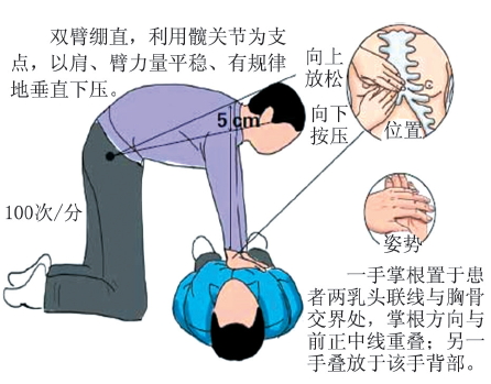 ? ? ? ?該類(lèi)人員應(yīng)該采用人工胸外心臟按壓法來(lái)恢復(fù)病人的心跳。一般可以按下述口訣進(jìn)行,頻率是每分鐘為60~80次。